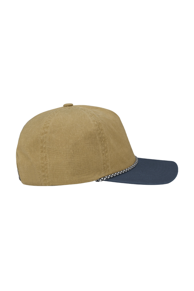 - Mesh stay, slightly curved bill with rope.