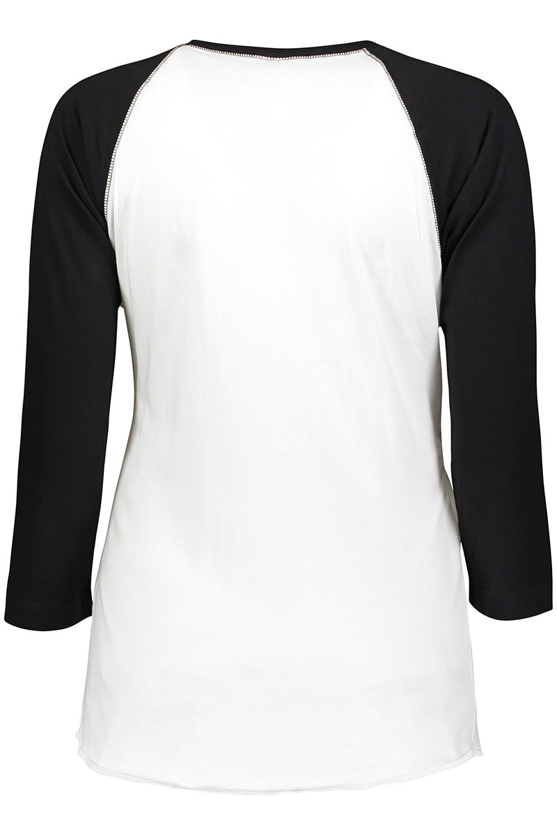 - Flatlock stitched contrast ribbed collar and raglan armholes.