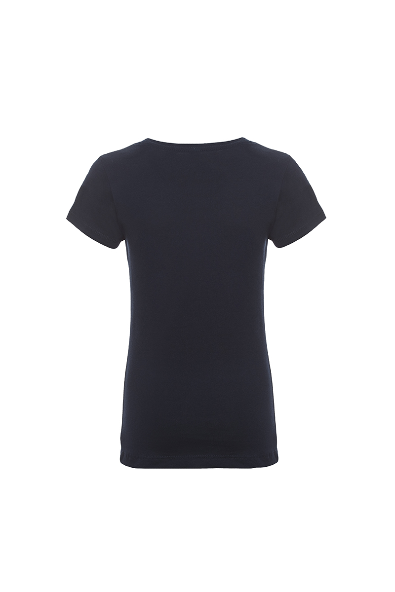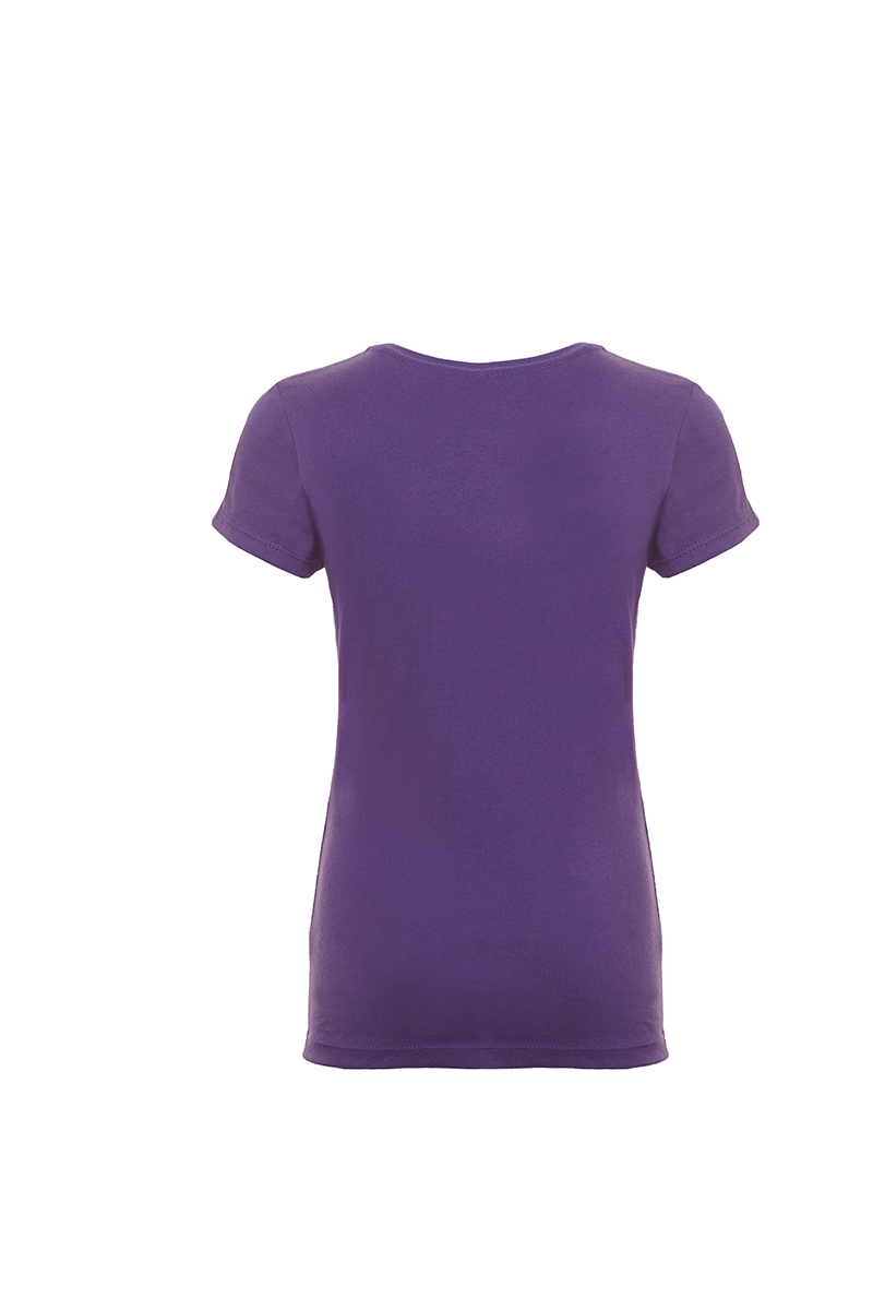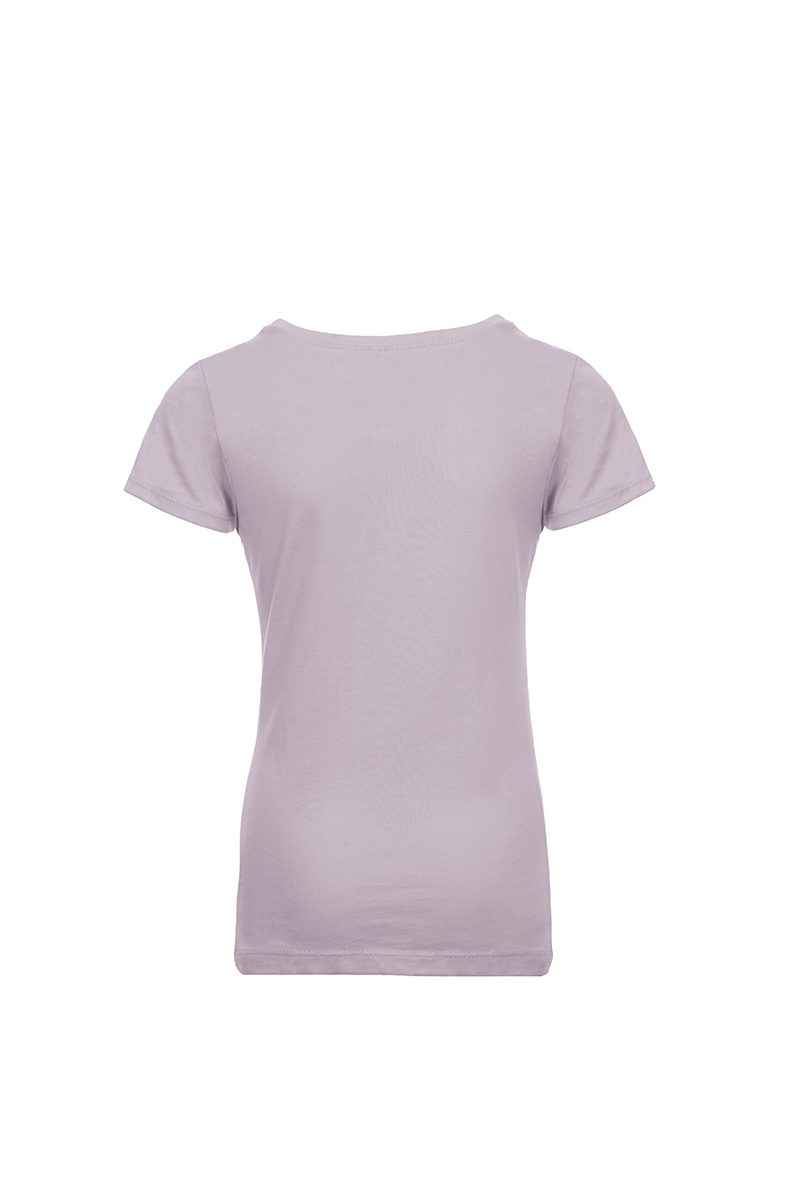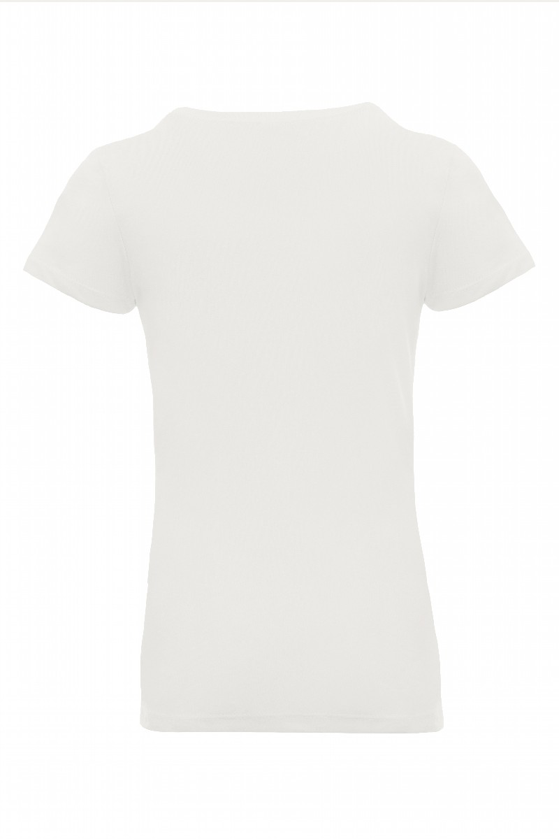 - Set-in collar of 1x1 baby rib knit with cover stitch.