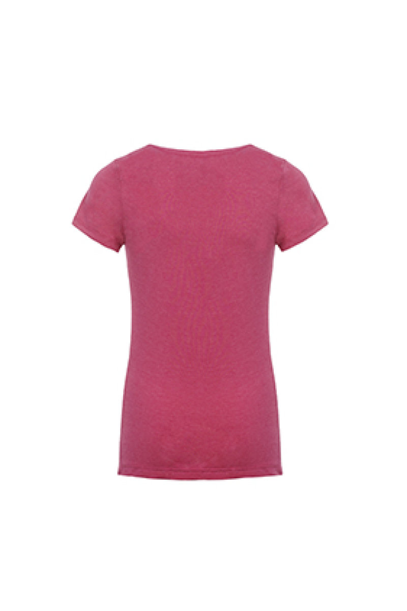 - Set-in collar of 1x1 CVC baby rib with front cover stitch.