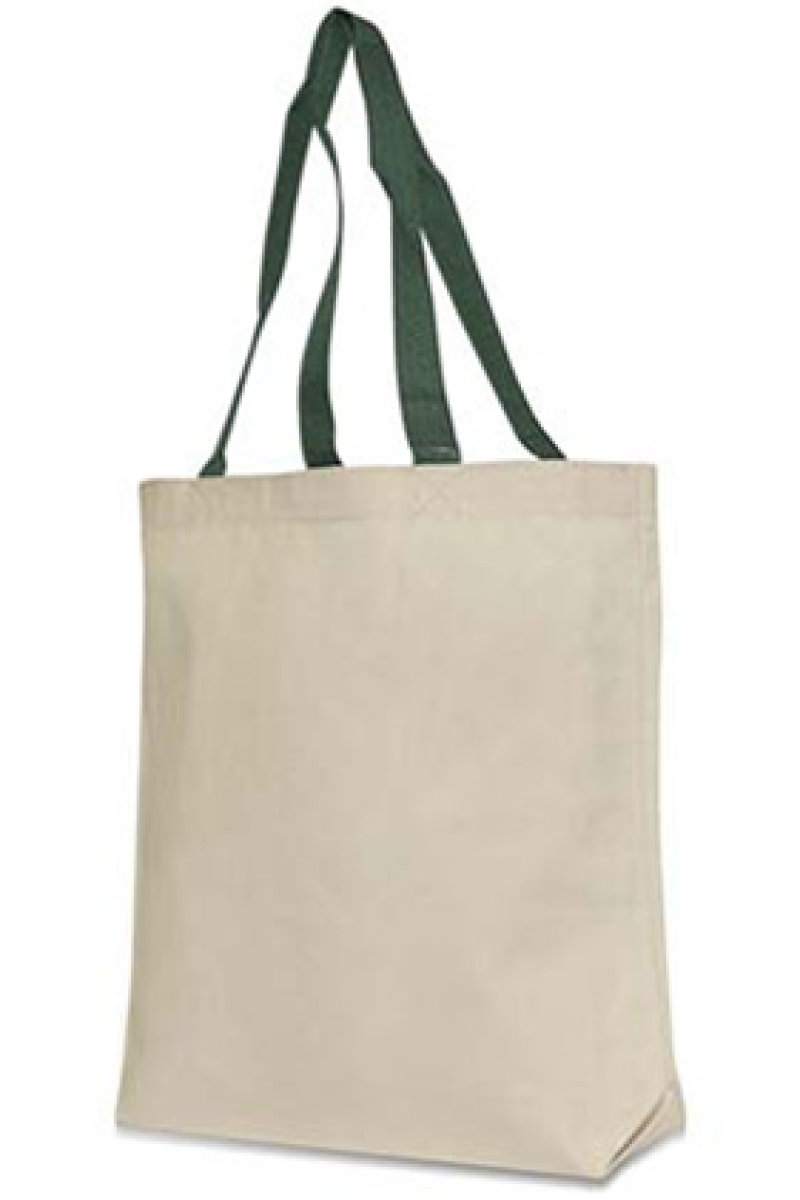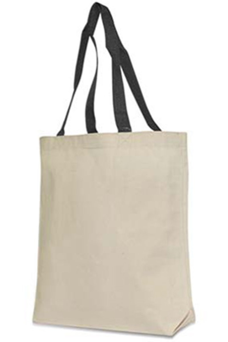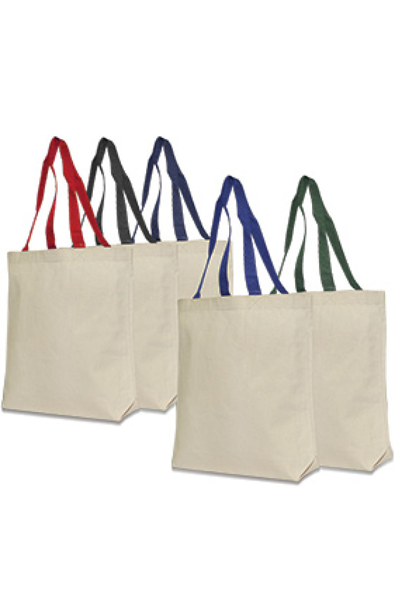 - 10.0 ounce heavyweight canvas tote with contrasting web handles.