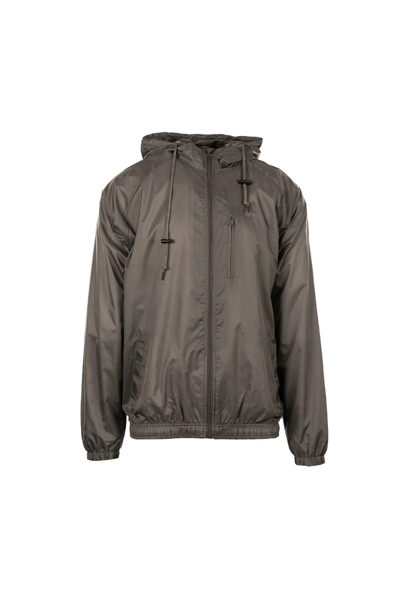 - 3.5 oz. 100% nylon taffeta shell coach-style hooded button-up jacket.