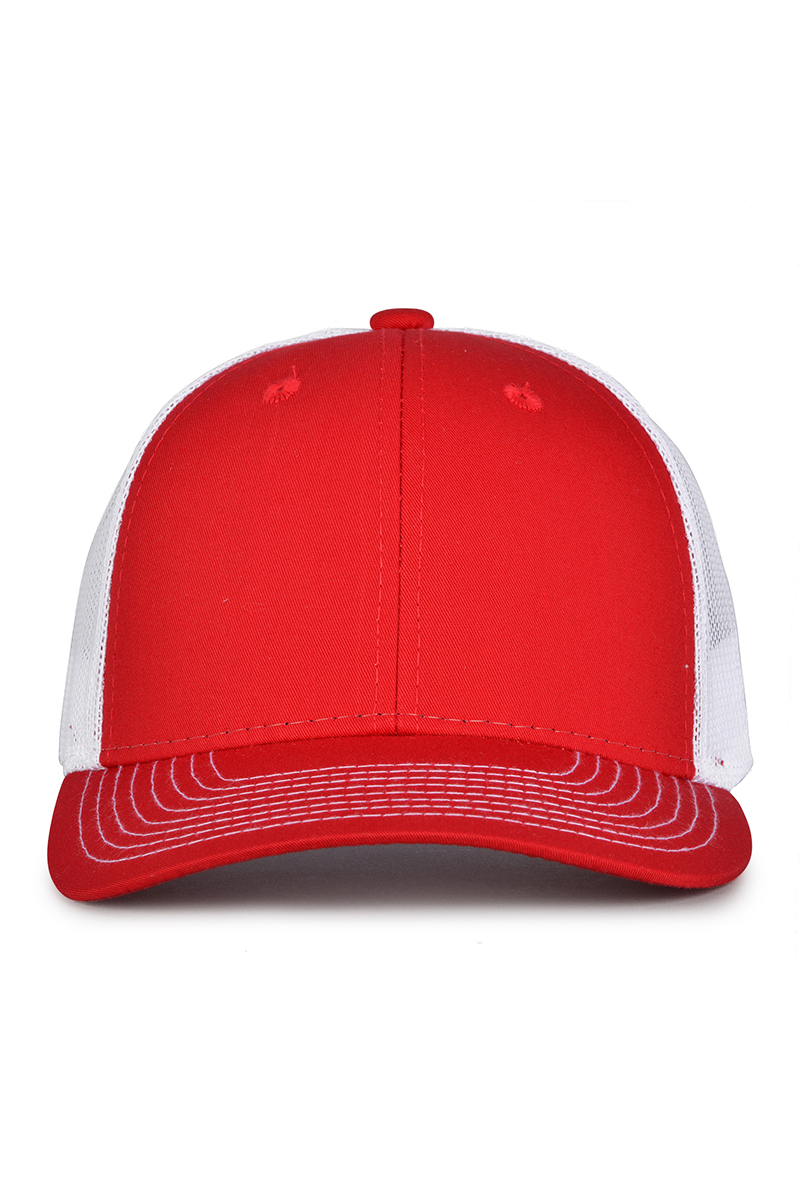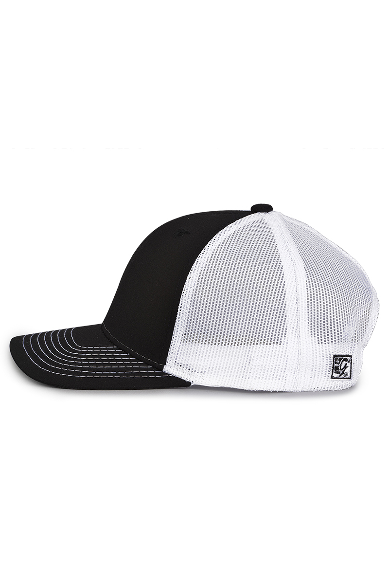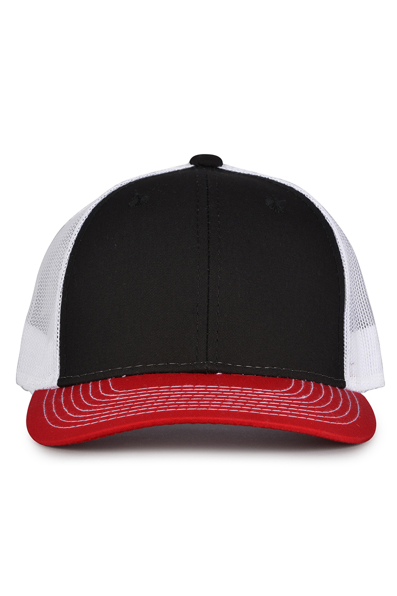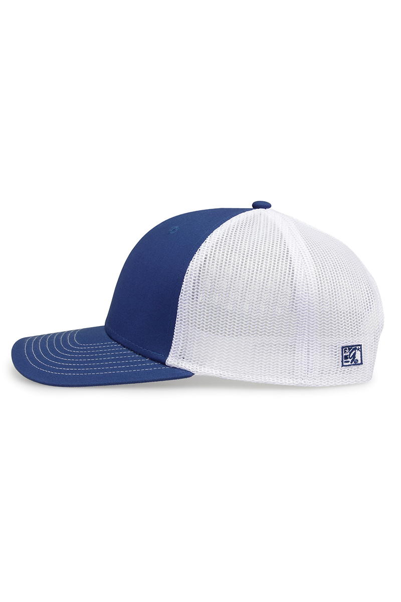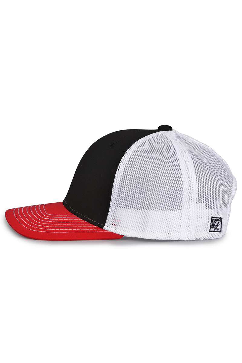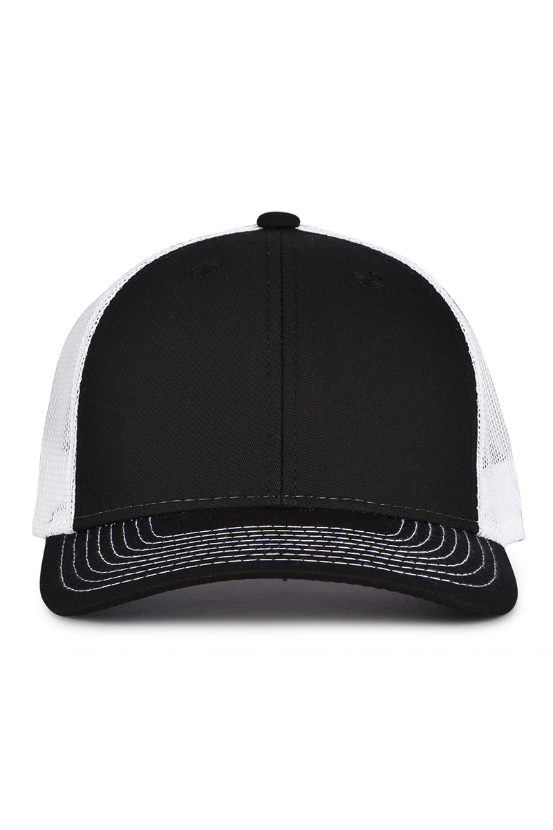 - Pre-curved contrast stitch visor.