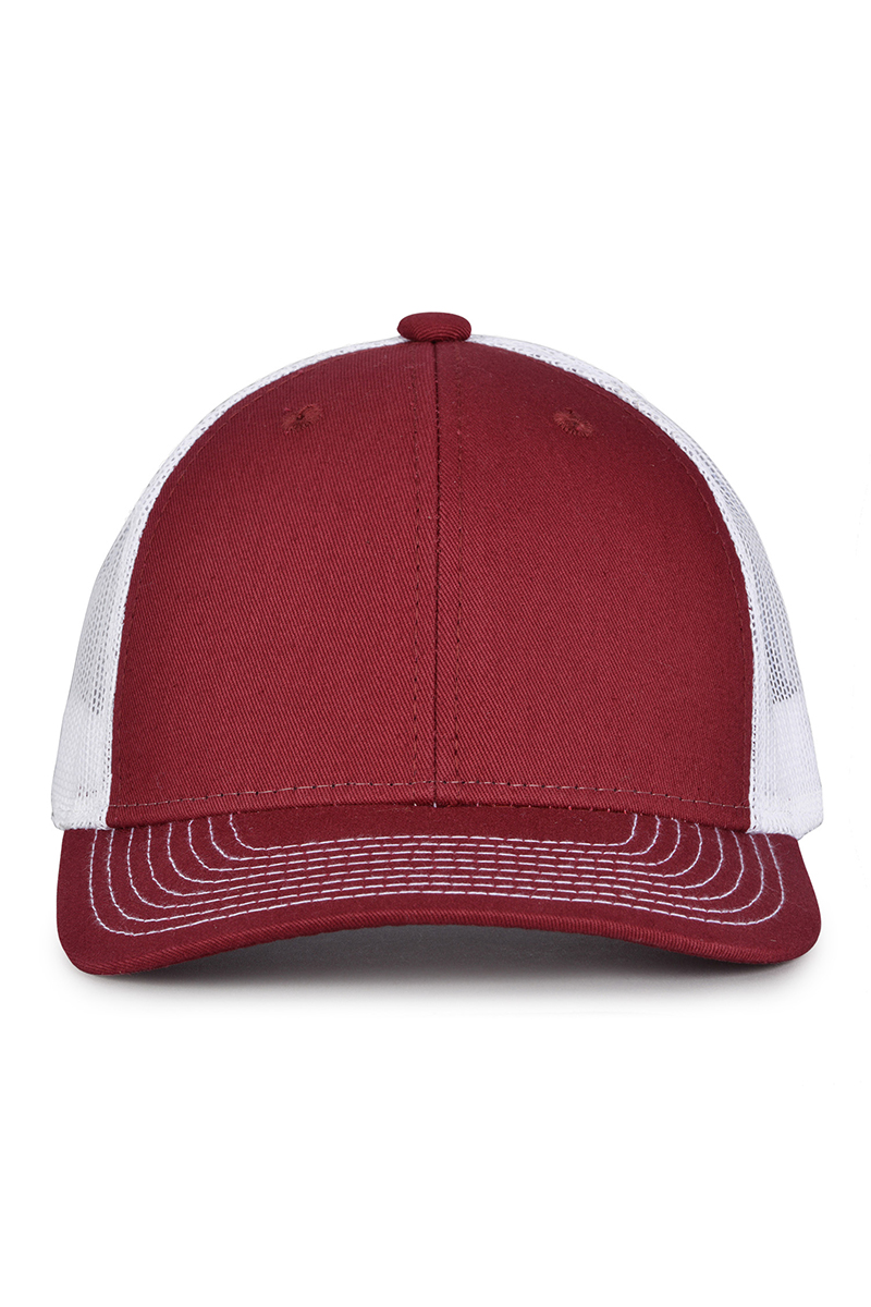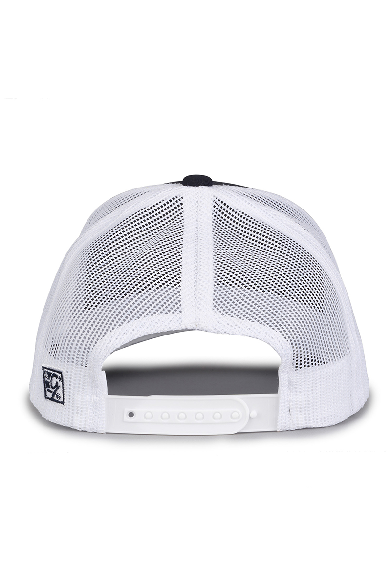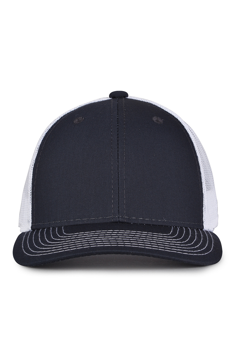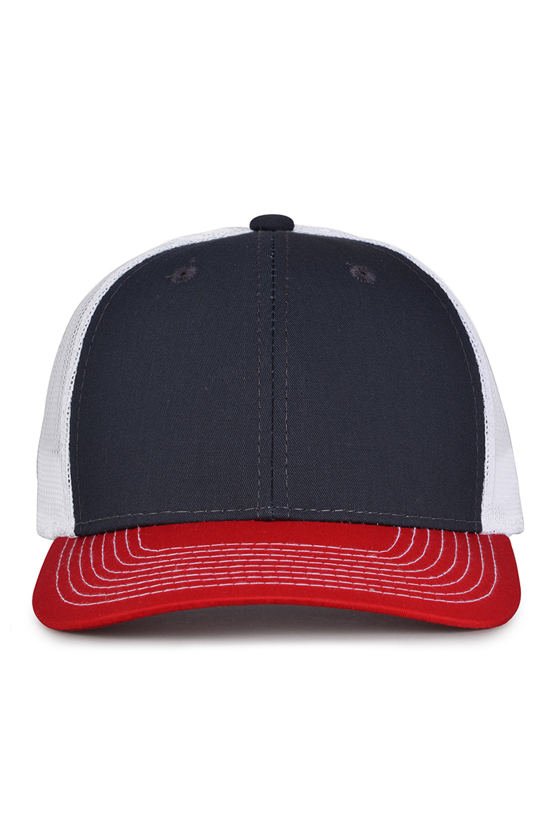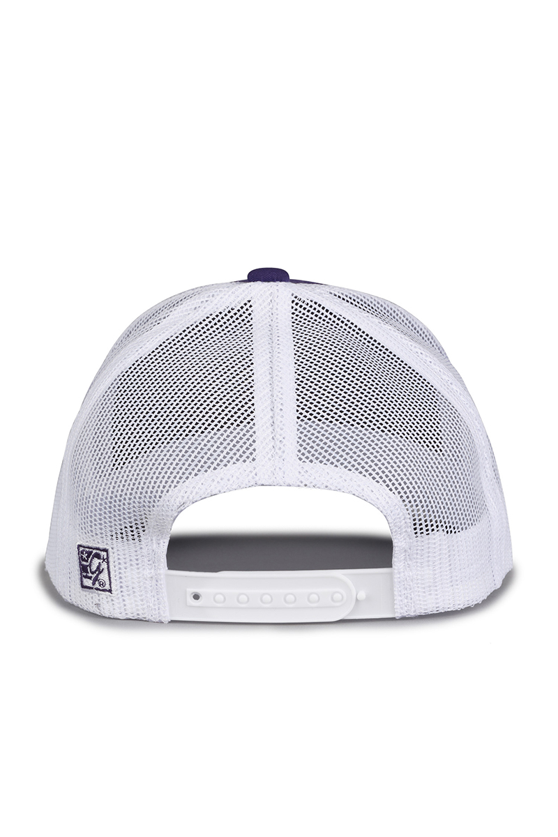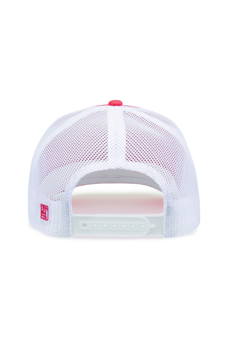 - Pre-curved contrast stitch visor.