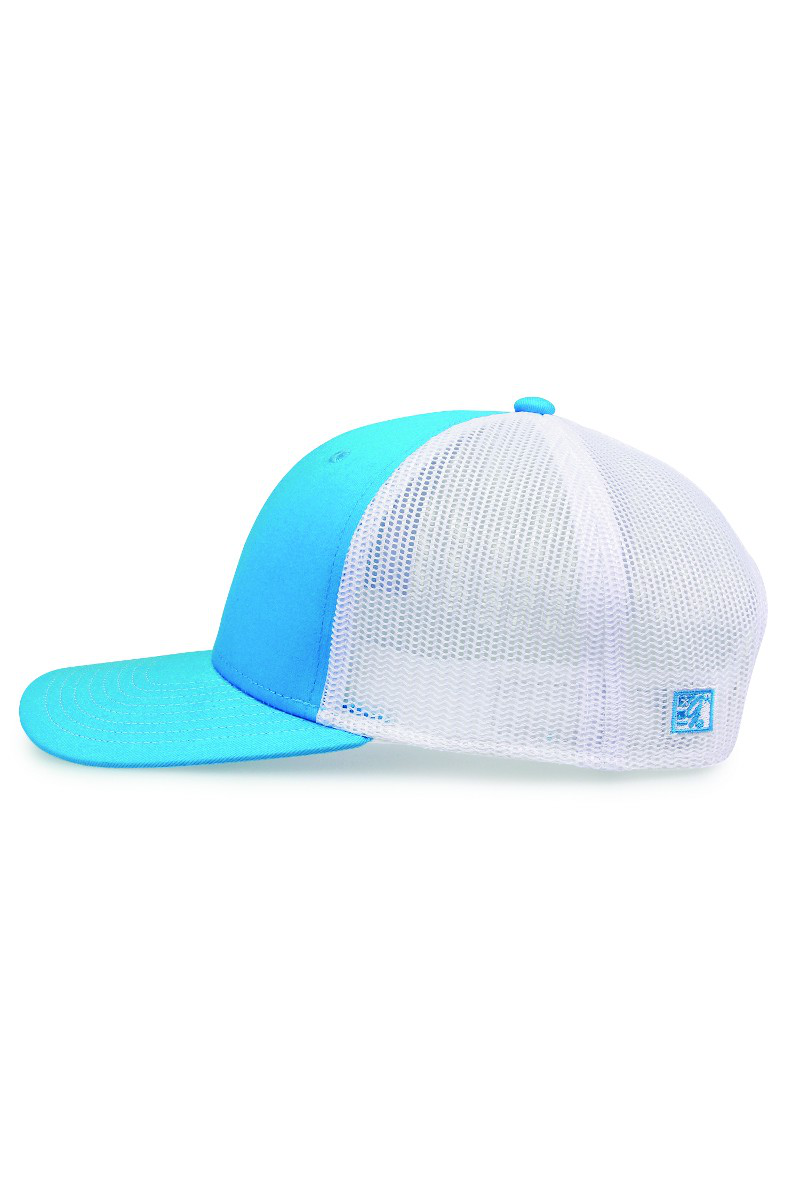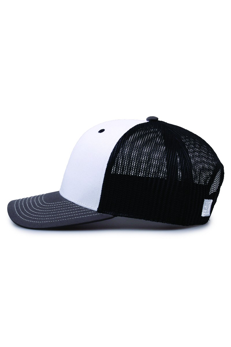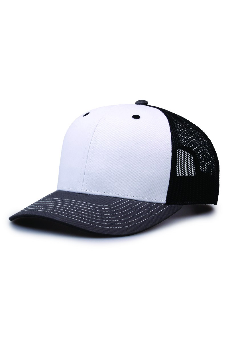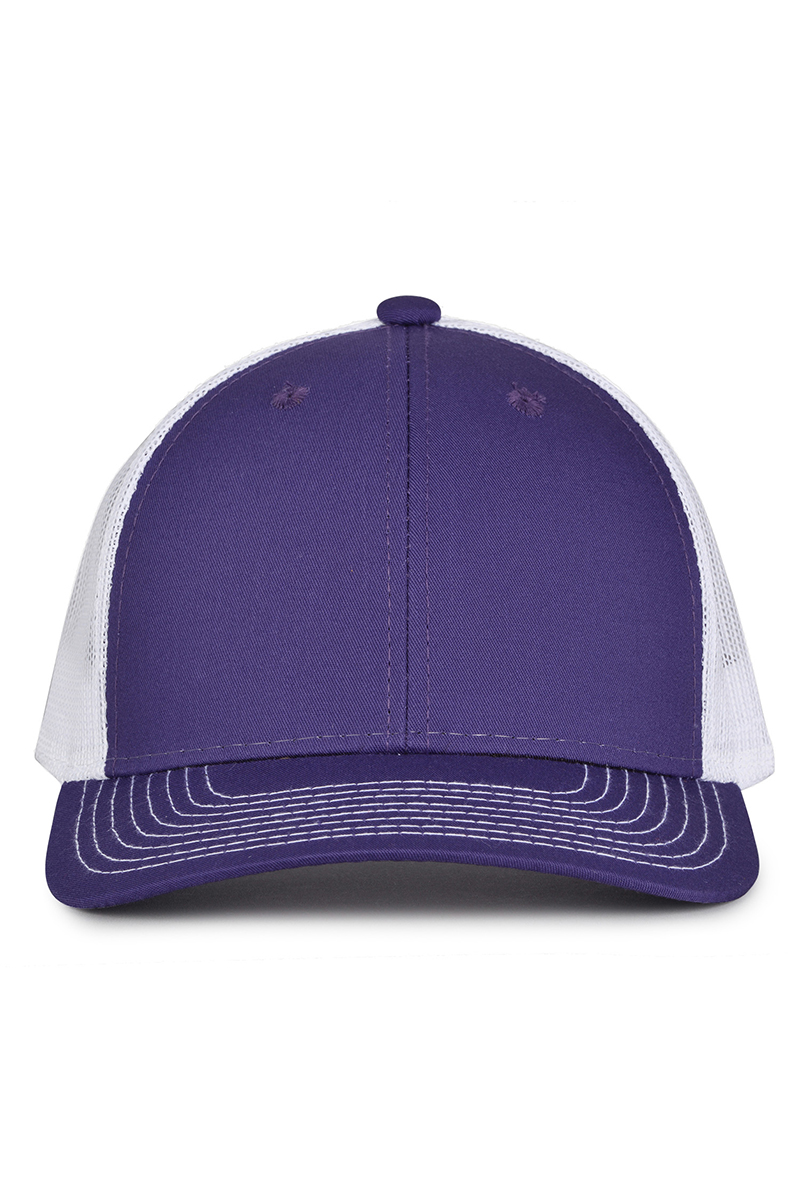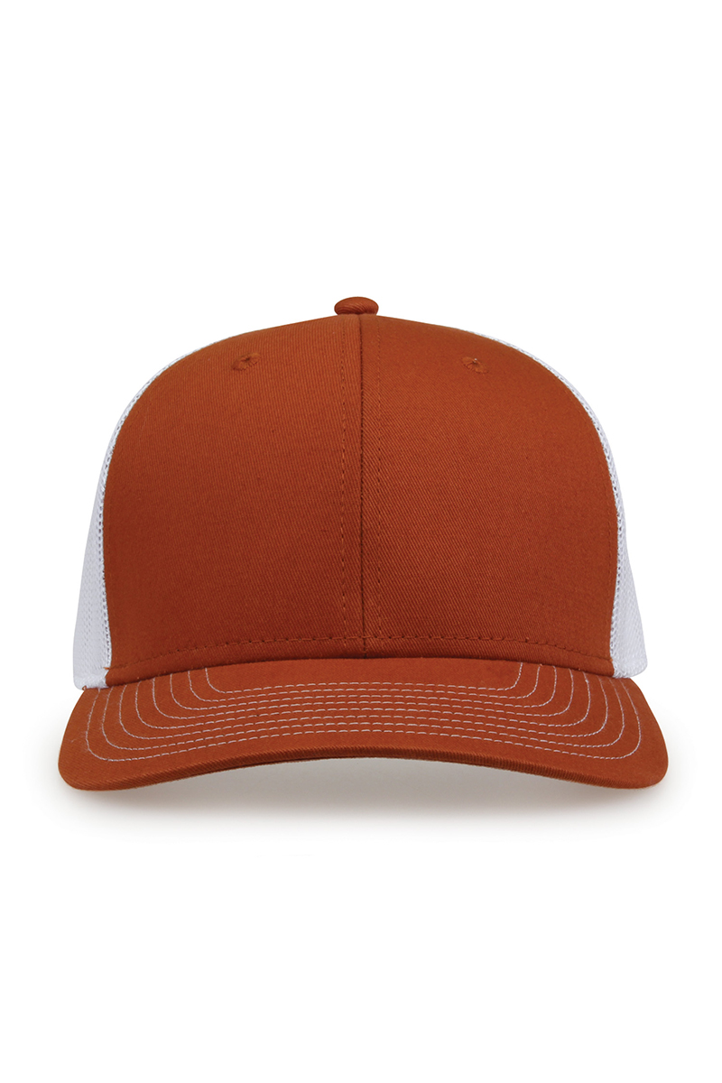 - Pre-curved contrast stitch visor.