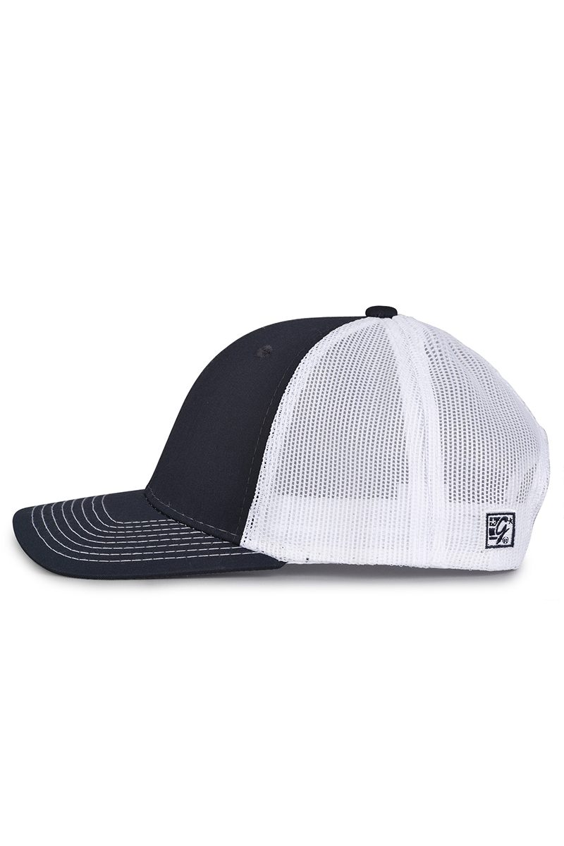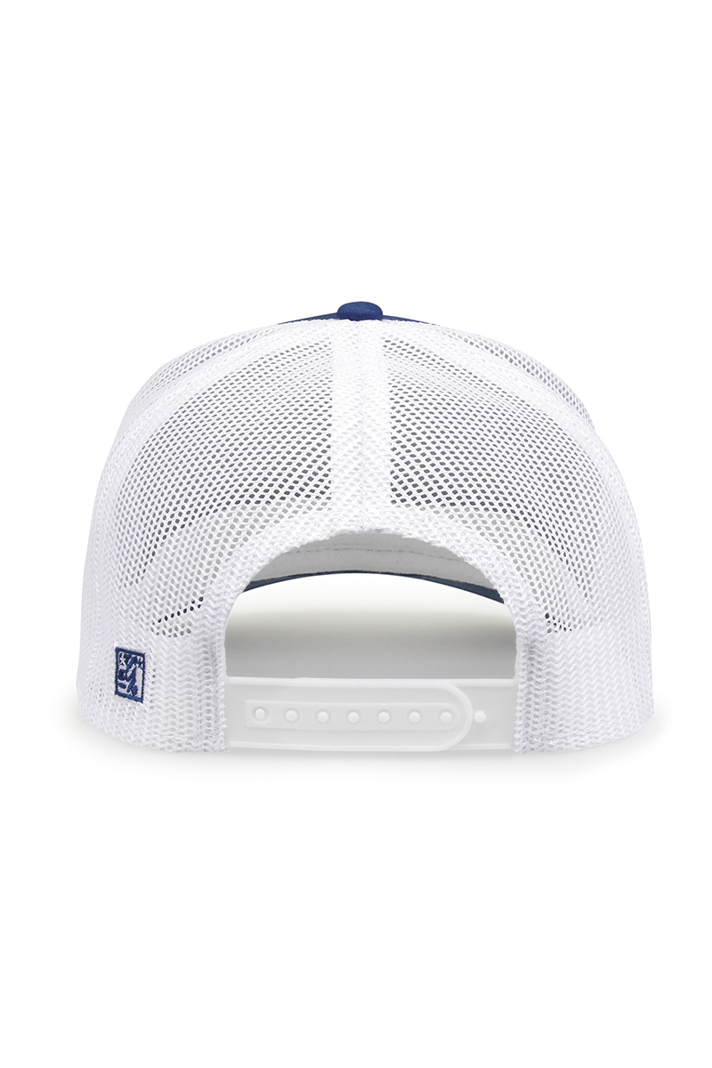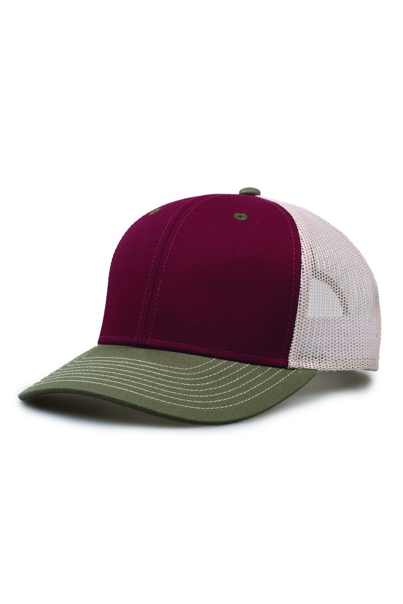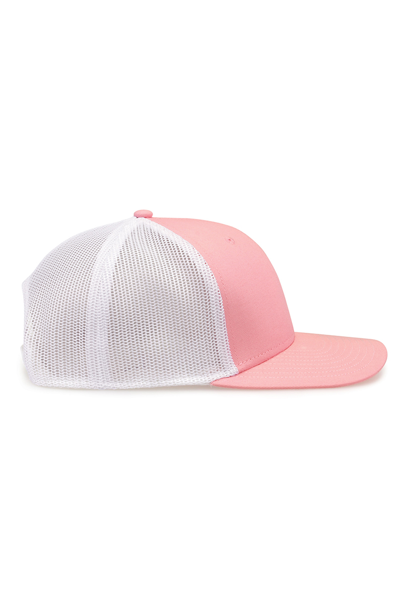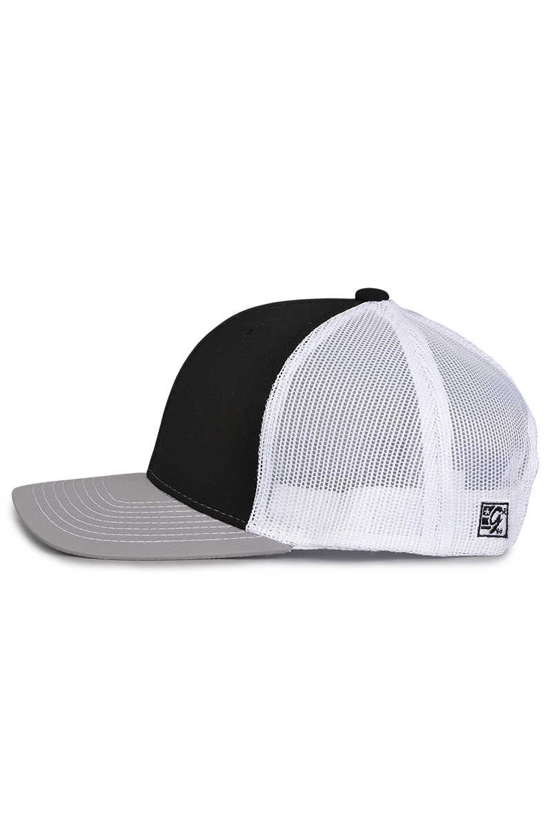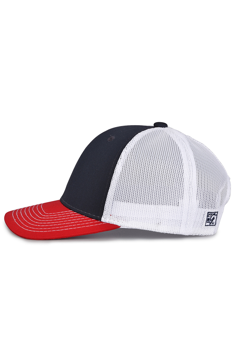 - Pre-curved contrast stitch visor.
