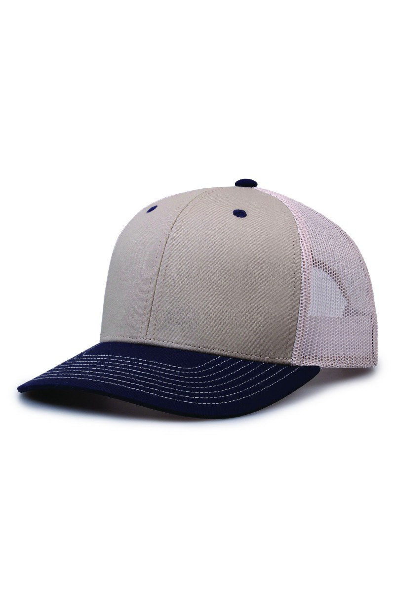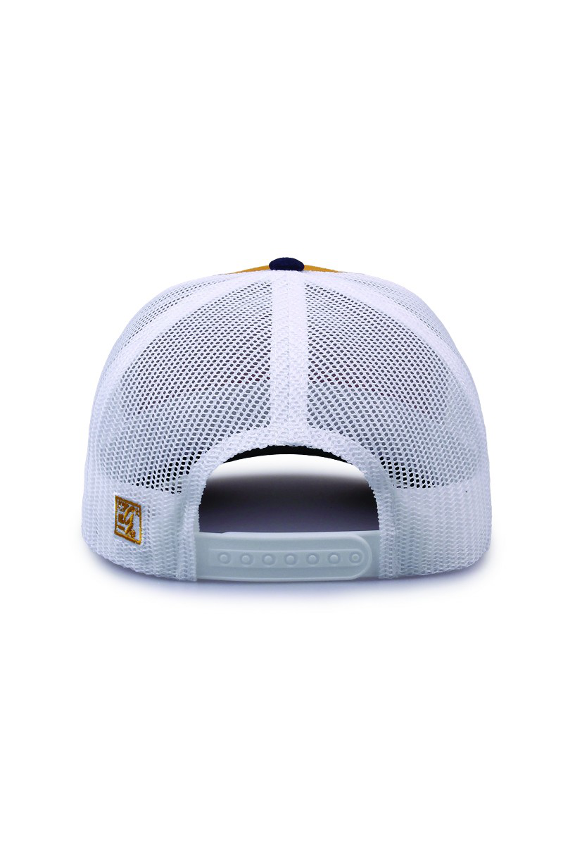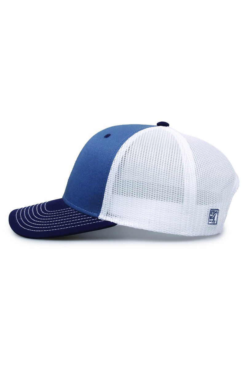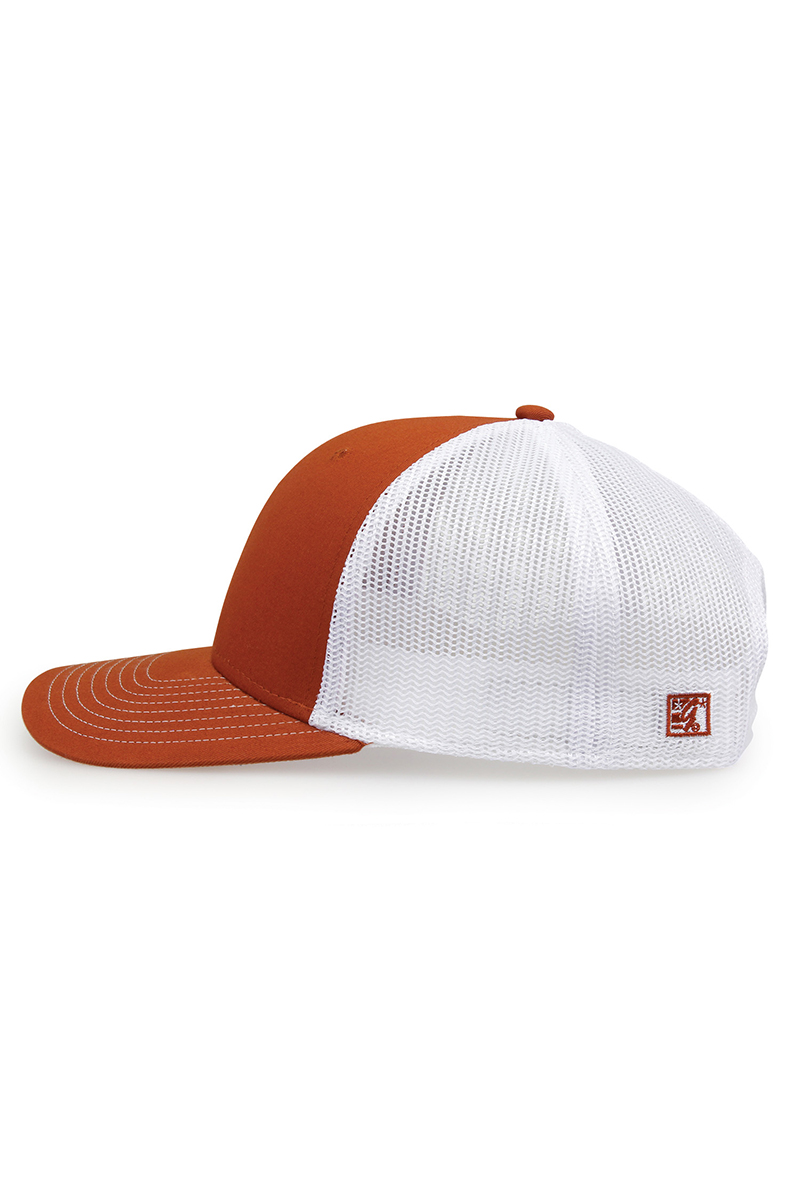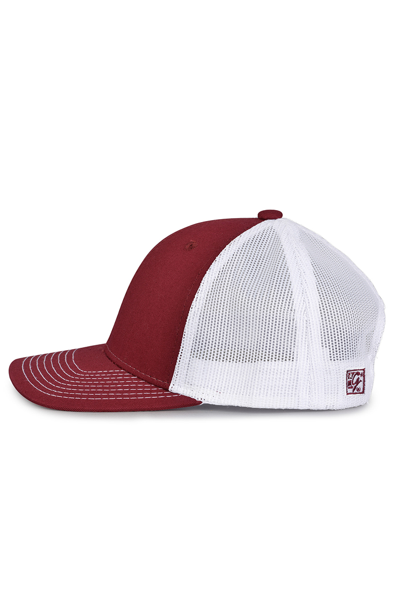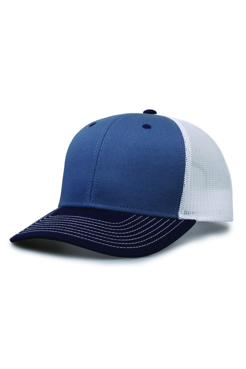 - Pre-curved contrast stitch visor.
