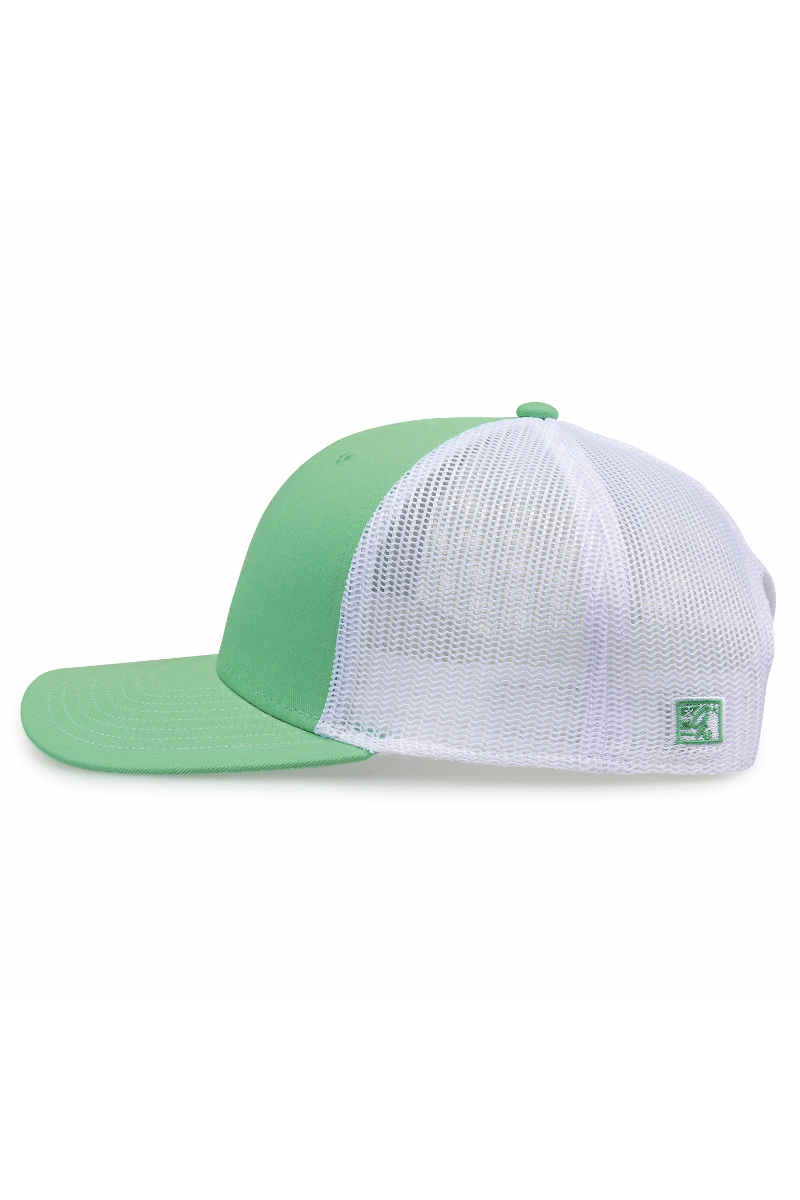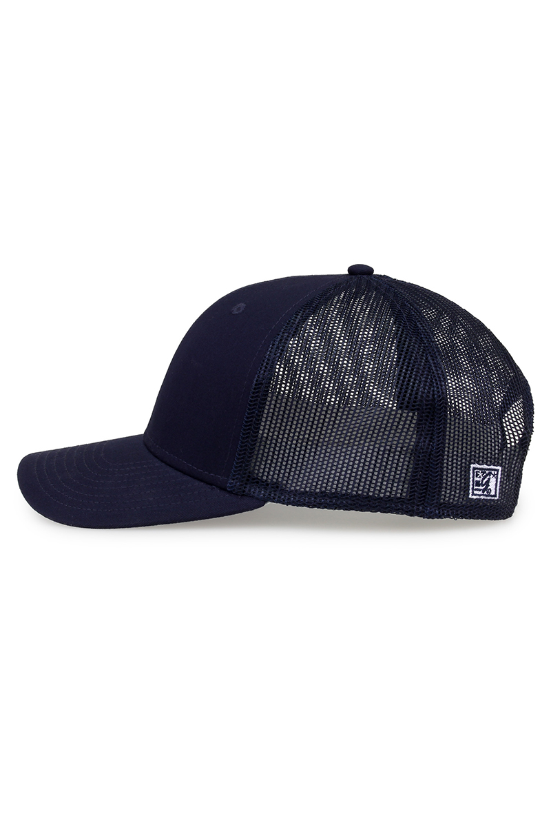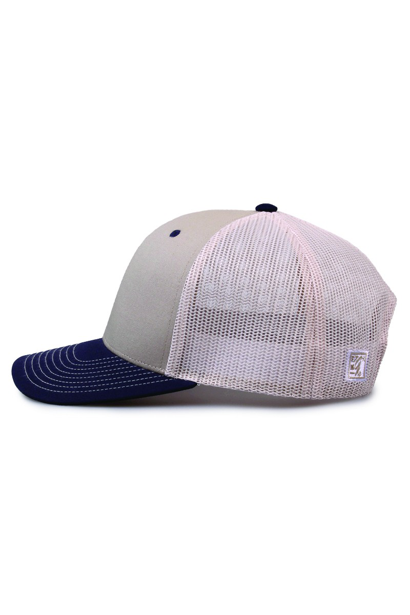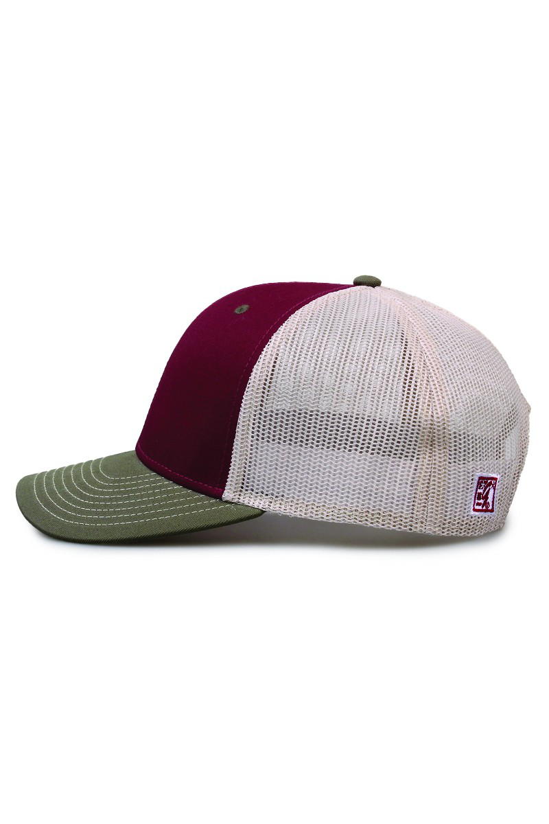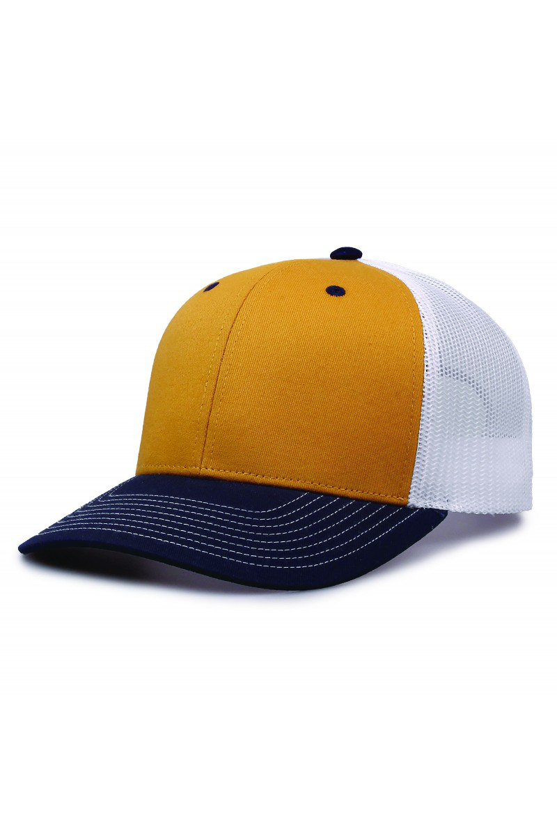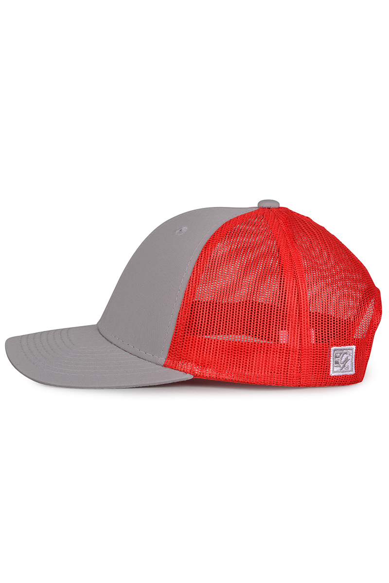 - Pre-curved contrast stitch visor.