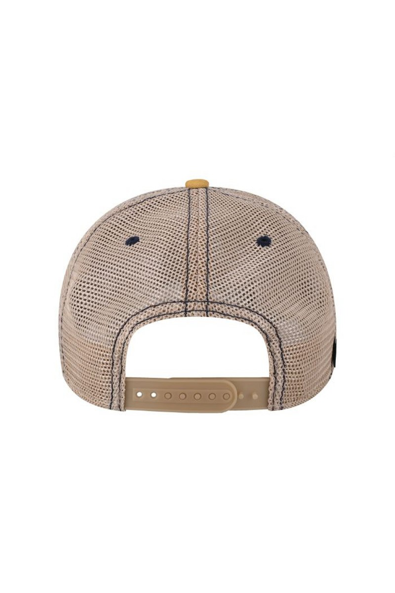 - Dirty washed cotton twill crown and mesh.