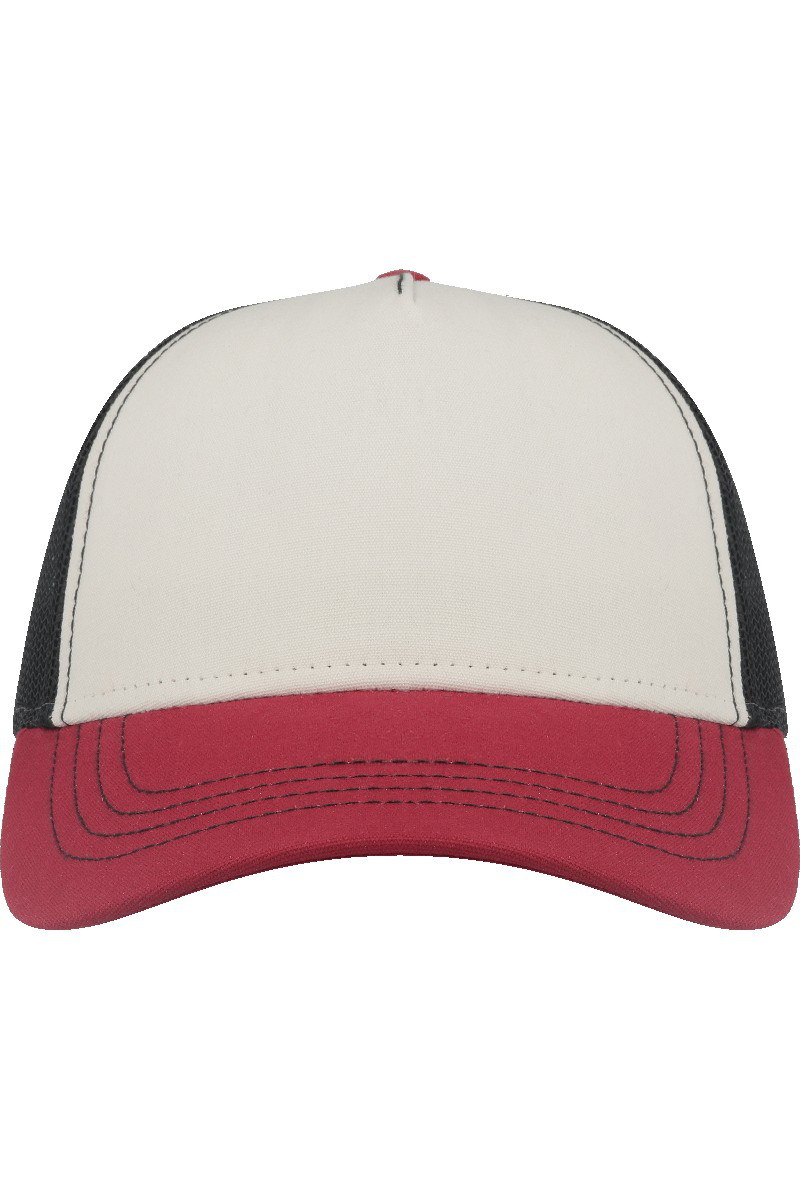 - Structured, ♻ recycled buckram, five-panel, mid-profile.