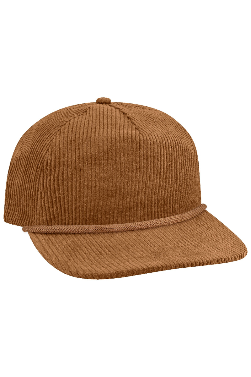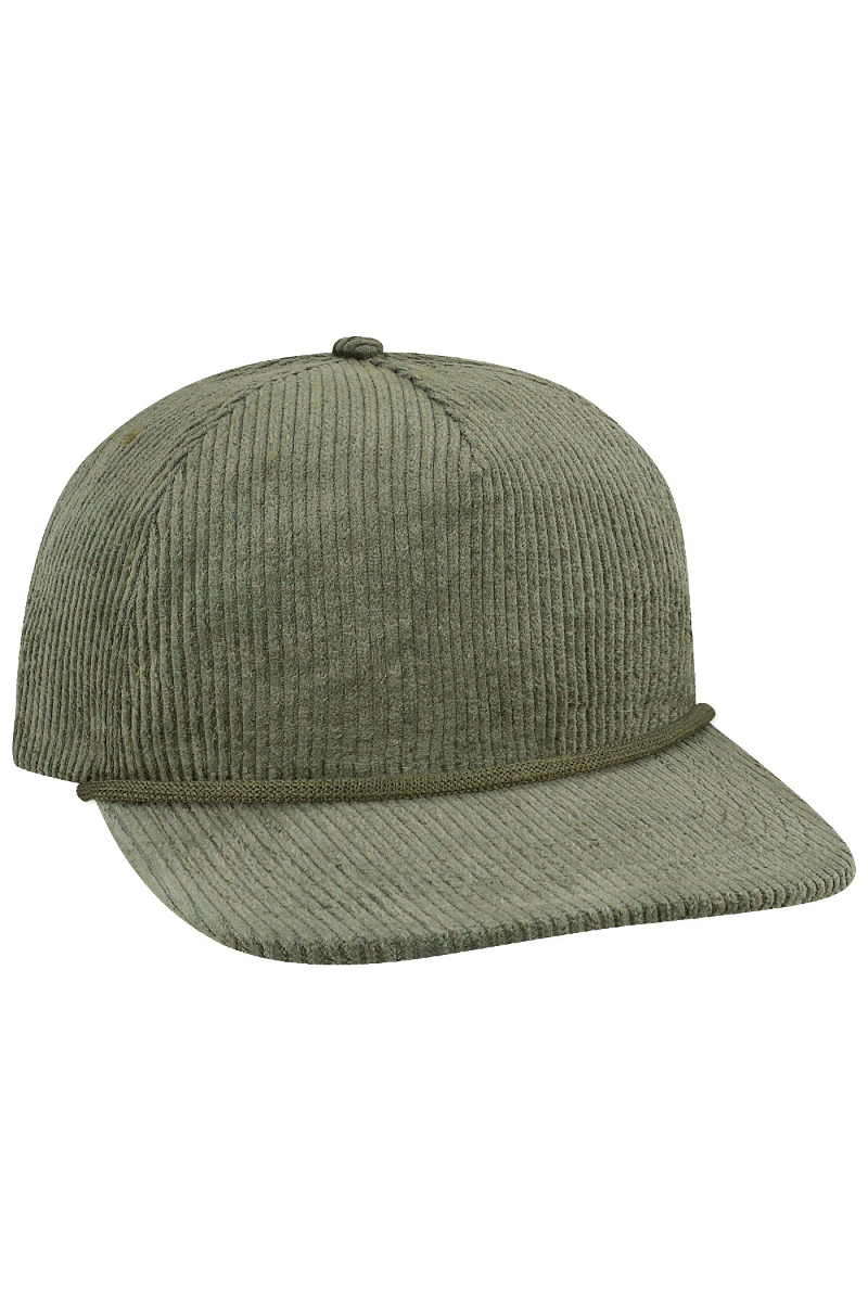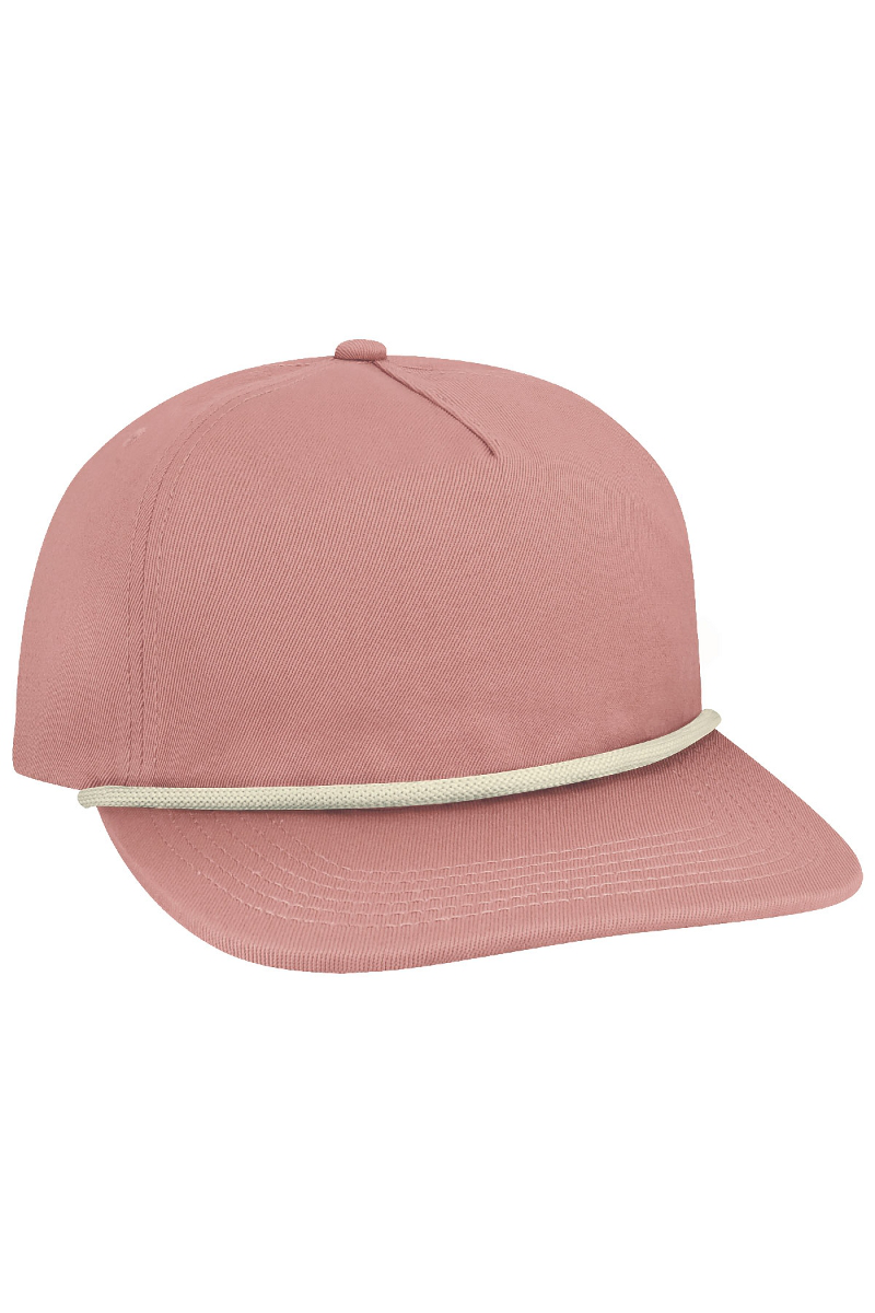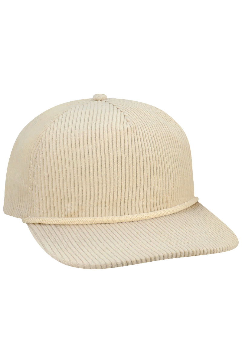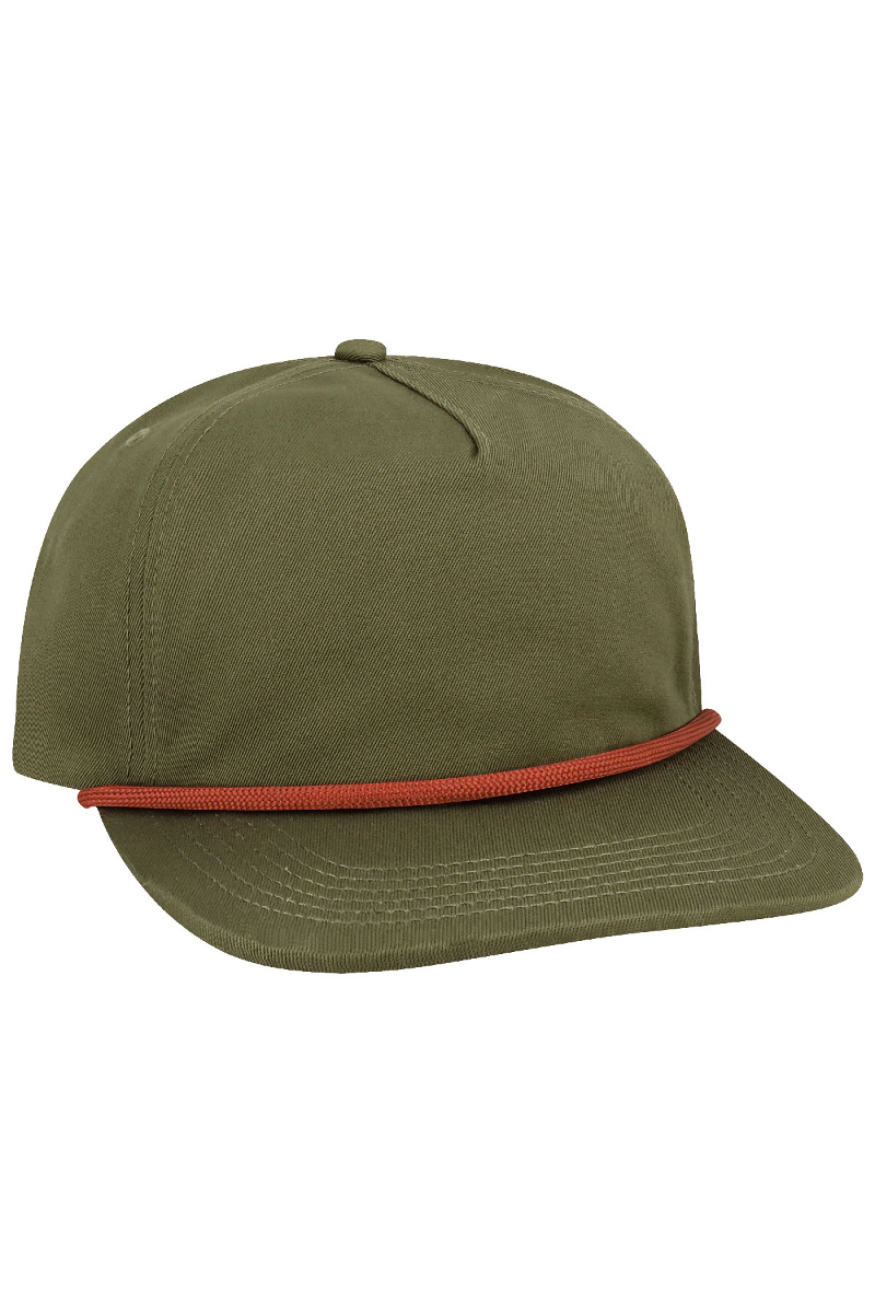 - Five-panel, low-profile with wide rope.
